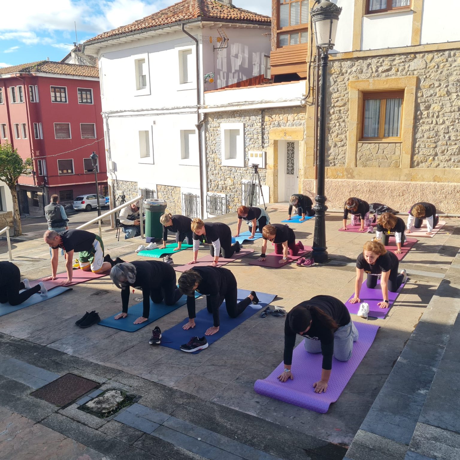 SEGUNDA PROTESTA.- Tras la manifestación del viernes, trabajadores y usuarios del polideportivo se concentraron hoy frente al Ayuntamiento de Colunga de forma singular, con una clase de pilates dirigida por Julio Fernández Peón. Una clase-protesta “concurrida” a pesar del desapacible viento. La plantilla cree que el equipo de Gobierno no cambiará de posición, “algo que irá en contra del funcionamiento del polideportivo”. Están dispuestos a renunciar al servicio de limpieza, pero defienden mantenerse como conserjes-monitores, “una figura que existe en muchos polideportivos”.