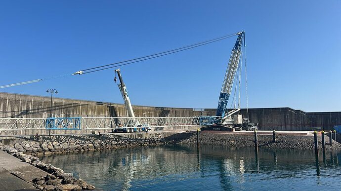 Esta mañana se inició el desmontaje de la enorme grúa que se encargó de cargar los bloques, tarea que se prolongará durante cuatro o cinco días. Cuando esta grúa desaparezca del paisaje portuario, comenzará la retirada de la explanada temporal que se construyó en la dársena pesquera para su ubicación. “Se utilizaron alrededor de mil camiones de escombro para construir una escollera que se remató con forja y una losa de hormigón. Ahora hay que retirarlo todo para que el puerto quede como estaba”, afirmó Carlos Manso, secretario de la Cofradía de Pescadores Santa María de Sádaba.
