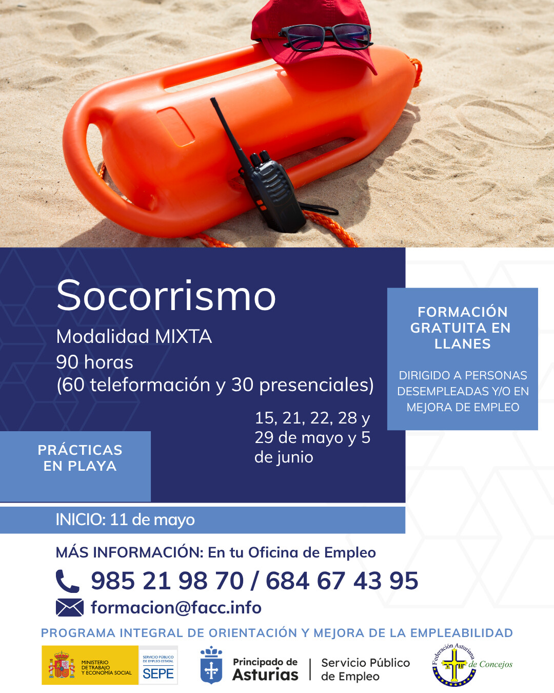 La Federación Asturiana de Concejos (F.A.C.C.), dentro del programa Programa Integral de Orientación y Mejora de la Empleabilidad (PIOME), organiza un curso de socorrismo que se celebrará en el concejo de Llanes.