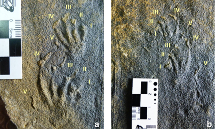 En ambos vestigios, las icnitas de las manos y de los pies varían de tetradáctilas a pentadáctilas, son asimétricas y la longitud de los dedos aumenta progresivamente.