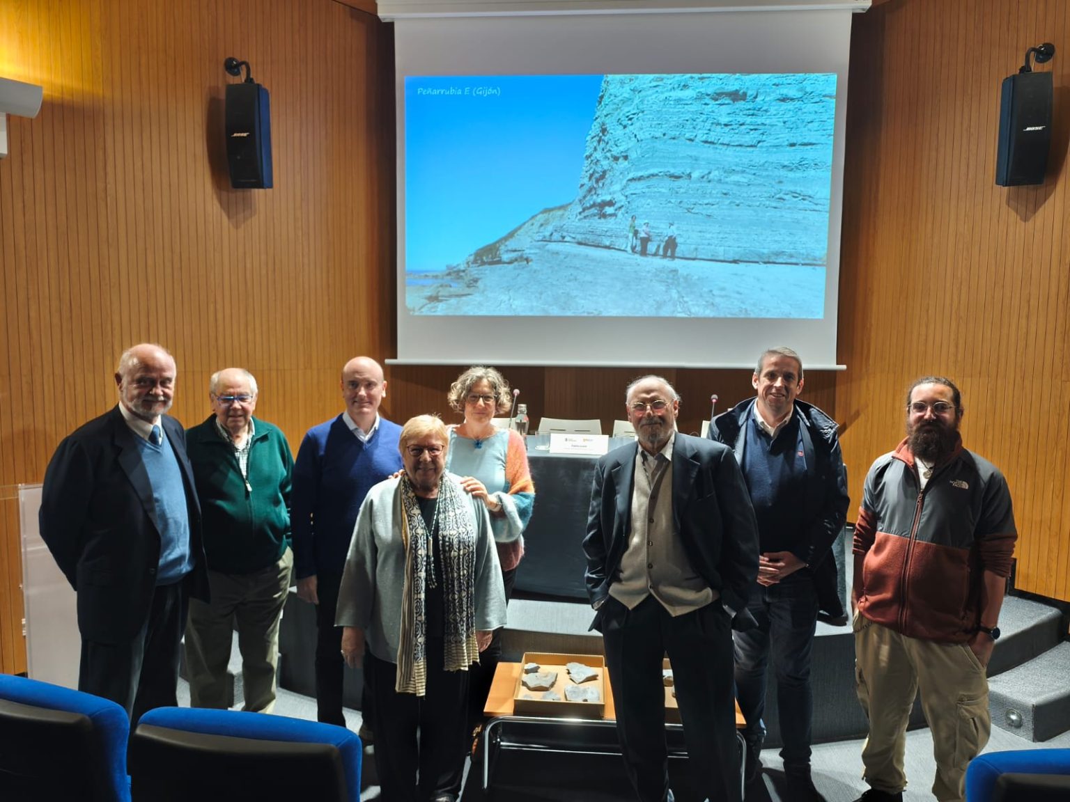 El director general de Patrimonio Cultural, Pablo León, ha asistido al acto junto con José Carlos García-Ramos, Laura Piñuela y Ángel Pérez, miembros del equipo científico del museo. El homenaje ha servido para mostrar el agradecimiento a los docentes por su enorme aportación al conocimiento de la bioestratigrafía del Jurásico marino asturiano. También ha permitido destacar su dedicación, vital para poner en valor la riqueza y diversidad de una parte esencial del patrimonio paleontológico de Asturias y consolidar el crecimiento y la calidad científica de las colecciones del MUJA.