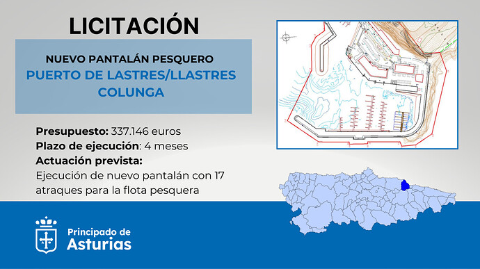 El Gobierno de Asturias ha licitado las obras para ejecutar un nuevo pantalán pesquero en el puerto de Lastres, una vez concluidos los trabajos de recarga de bloques para mejorar el abrigo del espigón que ha supuesto una inversión de más de 4,7 millones. La actuación cuenta con un presupuesto de 337.146 euros y se estima que el plazo de ejecución sea de 4 meses. Las empresas interesadas podrán presentar sus ofertas hasta el día 30 de este mes.