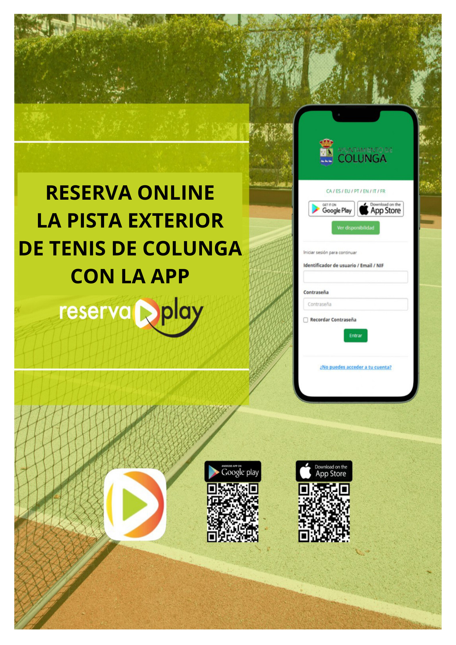 - Descarga la APP "ReservaPlay" y reserva cómodamente en COLUNGA!