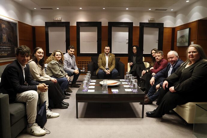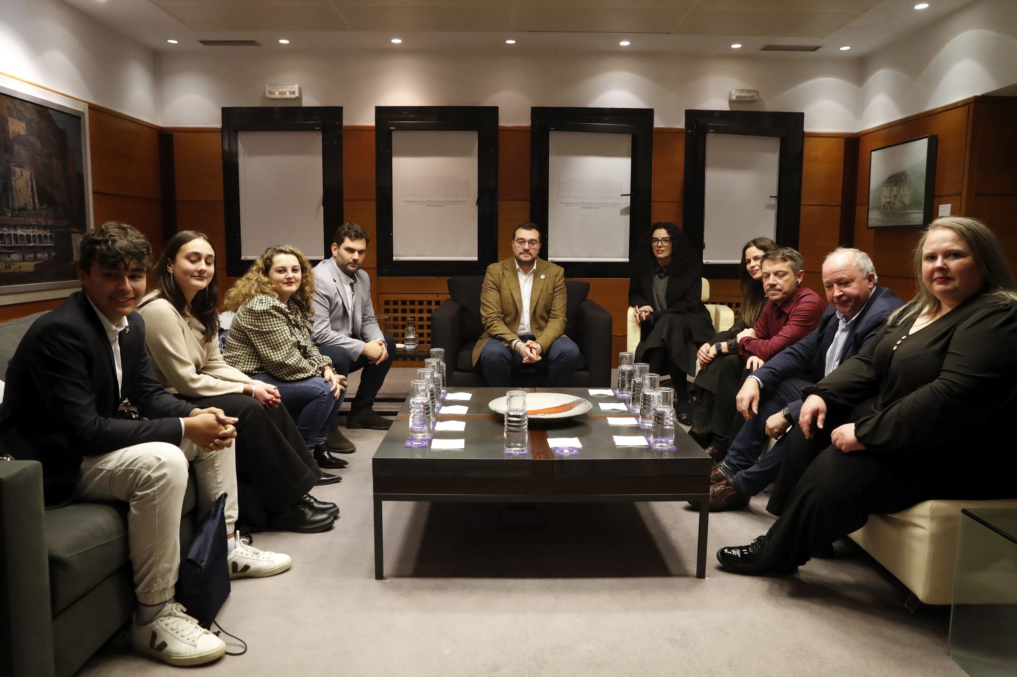 El presidente del Principado, Adrián Barbón, ha recibido esta tarde a los ganadores, finalistas y presentadores del Premio Obdulia Álvarez ‘La Busdonga’ de Asturianada 2025. Entre ellos el joven llanisco de 17 años de edad Néstor Díaz, vencedor en la categoría moza, intérprete que le pega tanto a la asturianada como a las rancheras.