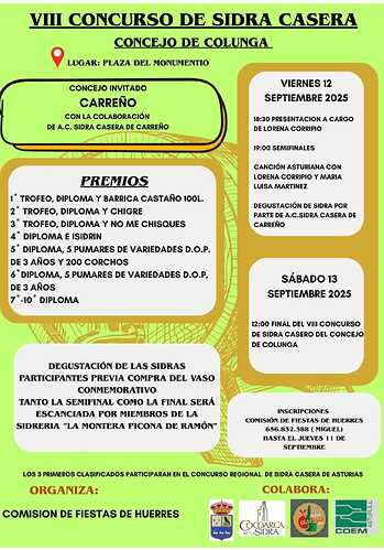 - 12:00 final del VIII Concurso De Sidra Casero del Concejo de Colunga